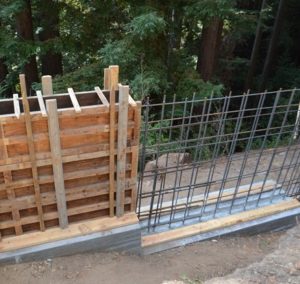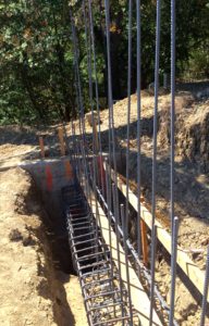 Other times we need to design a property line retaining wall. Often this has approximately 2 ft of backfill on both side and about 6 ft of fence wall. When such situations are encountered, you need to design the upper portion of the stem wall with wind pressure that can come from either direction. Therefore we balance the retaining wall footing dimensions of Heel and Toe.