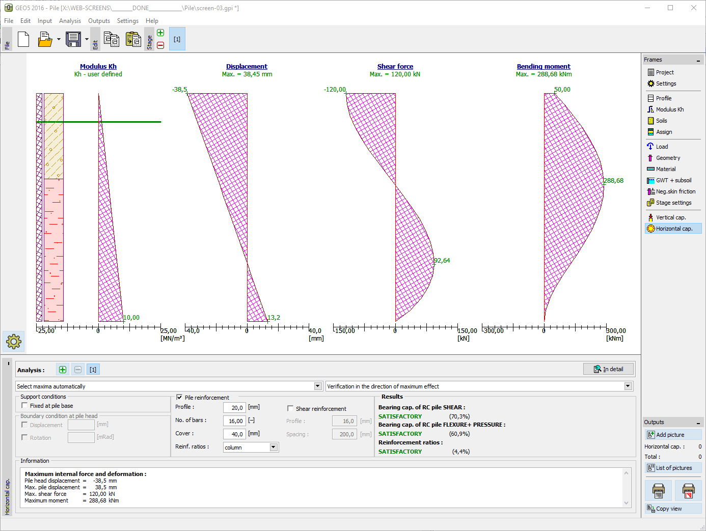 - Analysis of horizontal bearing capacity (Broms method, p-y method)