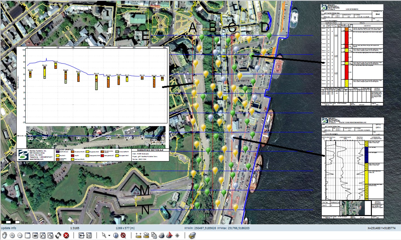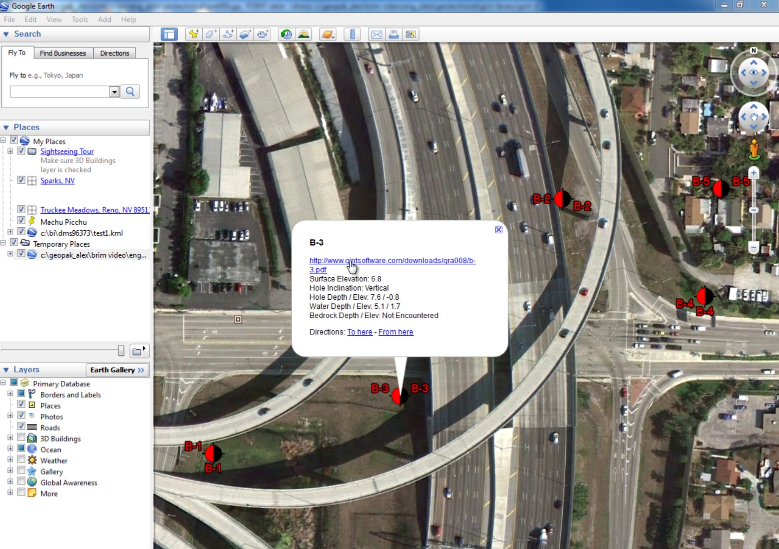 gINT allows users to view subsurface data directly from ArcGIS providing easy access to logs, lab data, reports, and more. The gINT for ArcGIS extension allows users to add the dimension of subsurface data to ArcGIS. Users can then generate gINT reports and query subsurface data direct from ArcMap.