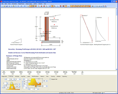 MasterKey Retaining Walls Design offers the most comprehensive program available for the design of both reinforced and unreinforced concrete and masonry retaining walls to Eurocode 7, BS 8002, BS 8110, CP2 IS 325 and BS 5628 Part1 and Part2. Highways design to BD 30/87 & BD37/01 is also included.
