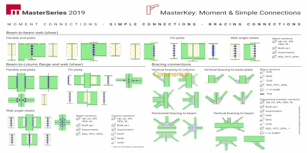 MasterKey Moment & Simple Connections are the UK's two leading software programs for the design of structural steel connections. The powerful editing facilities and the optional automatic design, enable the software to design and draft multi-story and portal frame connections with maximum speed, economy, and accuracy. The software's user-friendly graphical input enables rapid optimisation of the structural design under the full control of the Engineer. Quickly review existing steel connections and automatically or interactively design new connections. MasterKey Moment & Simple Connections function fully as standalone or integrated software packages. In standalone mode, joints are designed based on user entered geometry and forces. Running inside MasterFrame or MasterPort in integrated mode, these values are seamlessly transferred from the analysis model giving you maximum speed, economy, and accuracy as well as the flexibility of design Save Design time Save Fabrication time Save money