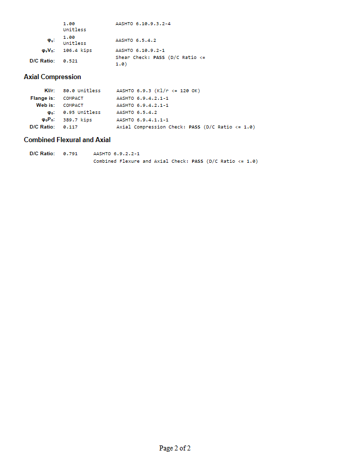 - Optional Code Compliance Check includes multiple versions of AASHTO and AISC code standards