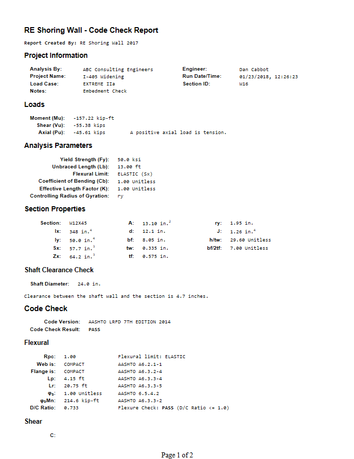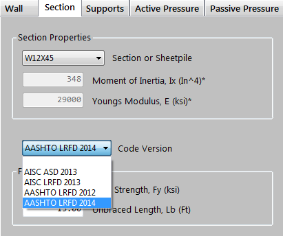- Database of AISC Wide Flange and many Sheet Pile shapes to choose from
