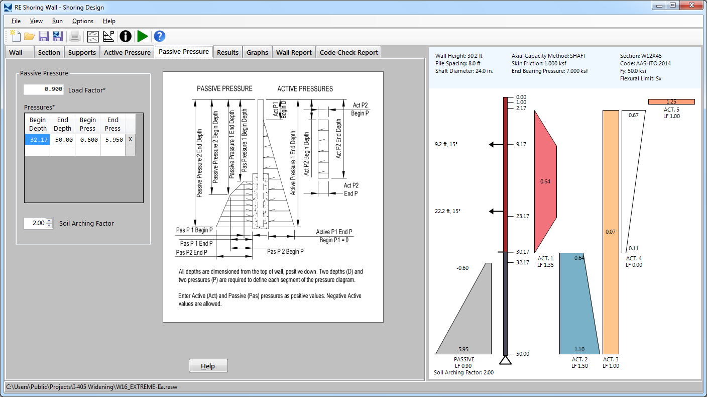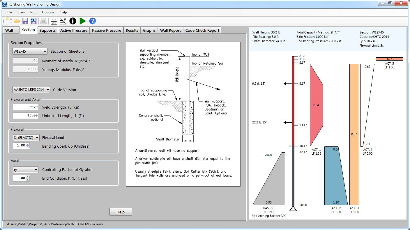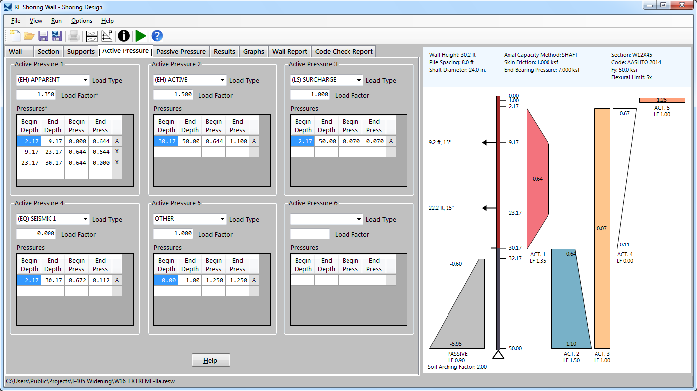 RE Shoring Wall is state-of-the-art software for designing shoring systems using current industry standards and methods. Shoring Design, Lagging Design, and Lateral Soil Pressure Analysis tools are combined into one powerful, user-friendly application.