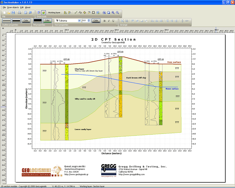 SectionMaker is an add-on module for our CPeT-IT software. It provides an easy to use CAD like interface for the creation of 2D cross sections based on the typical geotechnical sections previously defined in CPeT-IT.