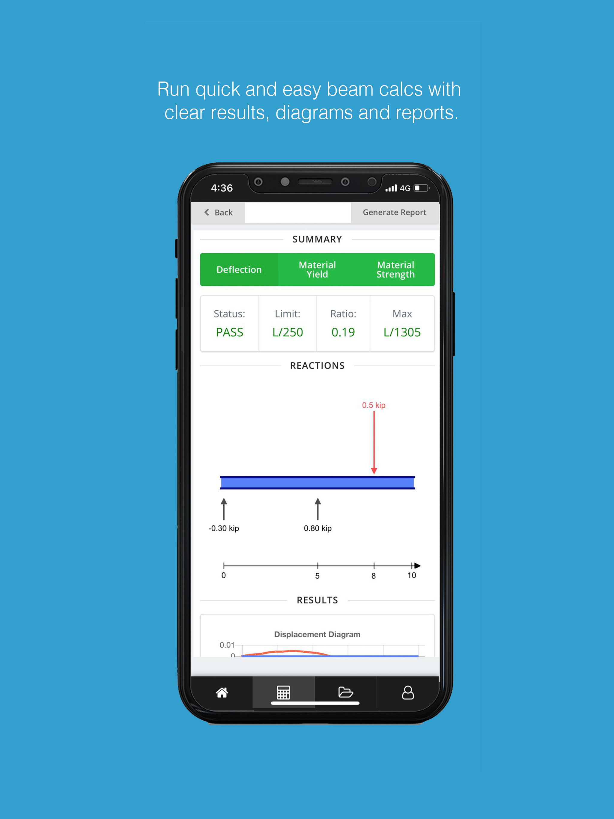 • Beam Calculator - run powerful beam analysis (reactions, bmd, deflection plus more), quickly and easily using a built in calculator and graphics interface